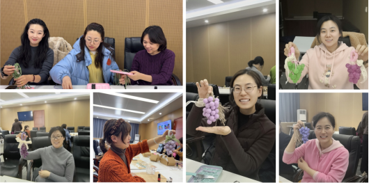 活动现场暖意融融,妇委会提前准备了皂基、天然精油、食用色素、创意模具及装饰配件,并邀请专业老师现场讲解示范。从原料配比、加热融皂、调色加香,到入模定型、冷却脱模,每一步都清晰易懂、细致贴心。女职工们暂时卸下教学科研的忙碌,化身手工创作者,大家相互协作、分享技巧,在欢声笑语中探讨配方、交流心得,在香气萦绕中舒缓压力、愉悦身心。一串串造型可爱、香气清新的葡萄手工皂陆续成型,不仅是女职工们巧思与匠心的结晶,更承载着节日的美好祝福与对生活的热爱。