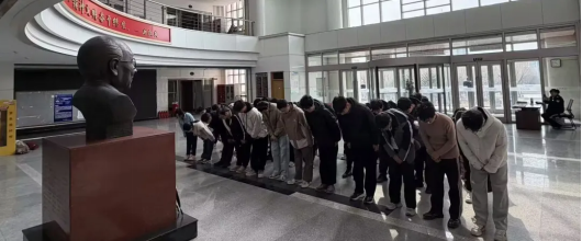 在静谧的氛围中,全体人员低头默哀,追忆先贤们深耕科研、立德树人的峥嵘岁月,感悟他们胸怀家国、无私奉献的赤子情怀。