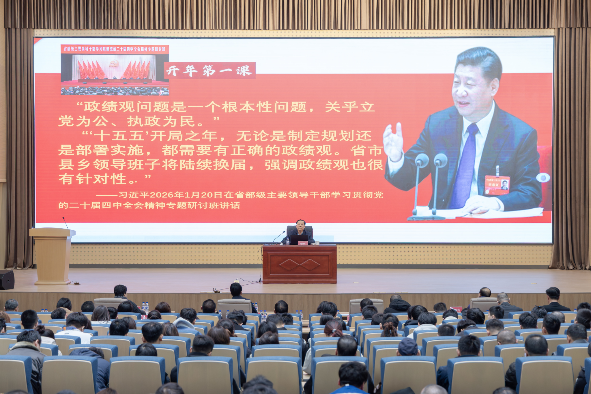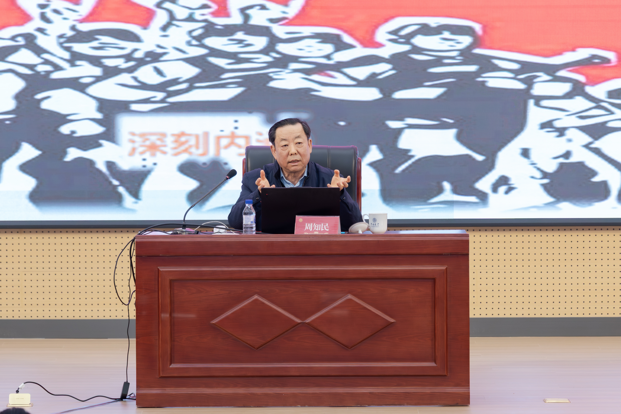报告中,周知民以丰富生动的党史故事,鲜活诠释中国共产党人始终坚守的正确政绩观。他深情讲述长征路上“半条被子”的感人故事:3名女红军战士将仅有的一床被子剪下一半留给贫苦百姓,让群众深刻懂得“共产党就是自己有一条被子,也要剪下半条给老百姓的人”。他还分享贵州习水土城镇“女红军街”的历史见闻,以及邓颖超等老一辈革命家多年后寻找当年受助群众、回赠新被的暖心往事,生动印证“江山就是人民,人民就是江山”的深刻内涵。同时,周知民以周恩来总理13岁立志“为中华之崛起而读书”、毛泽东同志22岁张贴《二十八画生征友启事》寻求救国同志等事例,展现共产党人从小树立为国为民崇高志向的精神境界。他特别提到,中国共产党诞生时13位代表平均年龄仅28岁,从建党到新中国成立砥砺奋斗28年,开国大典54门礼炮齐鸣28响,这些数字背后承载着党与人民同呼吸、共命运、心连心的赤子情怀,深刻彰显党始终坚持为人民服务根本宗旨、赢得革命胜利的历史必然性。